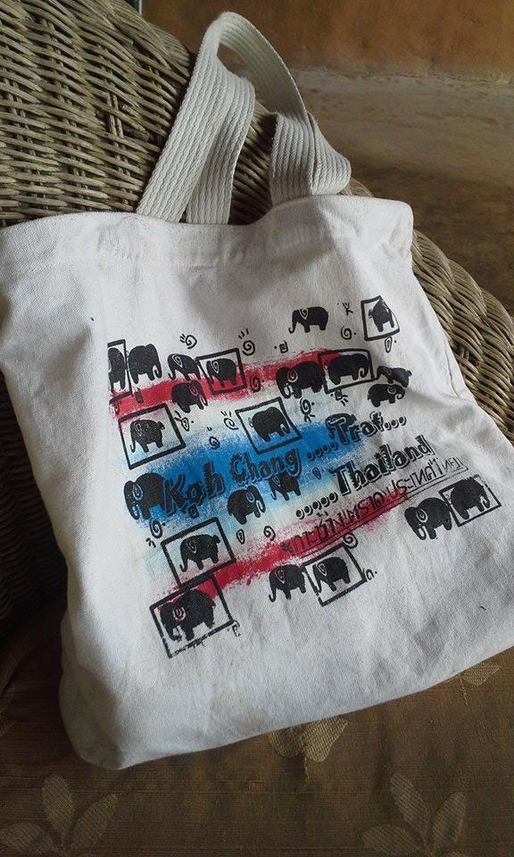 I much prefer this canvas bag I got for my birthday from the resort manager. I bring it around with me everywhere I go. It’s a simple handmade bag from a village local. When it gets a little dirty, I scrub it down with laundry detergent. It has got 23 elephants on it. Which is my fiancé’s birthdate and lucky number. I counted them because I had the time to. 🙂
